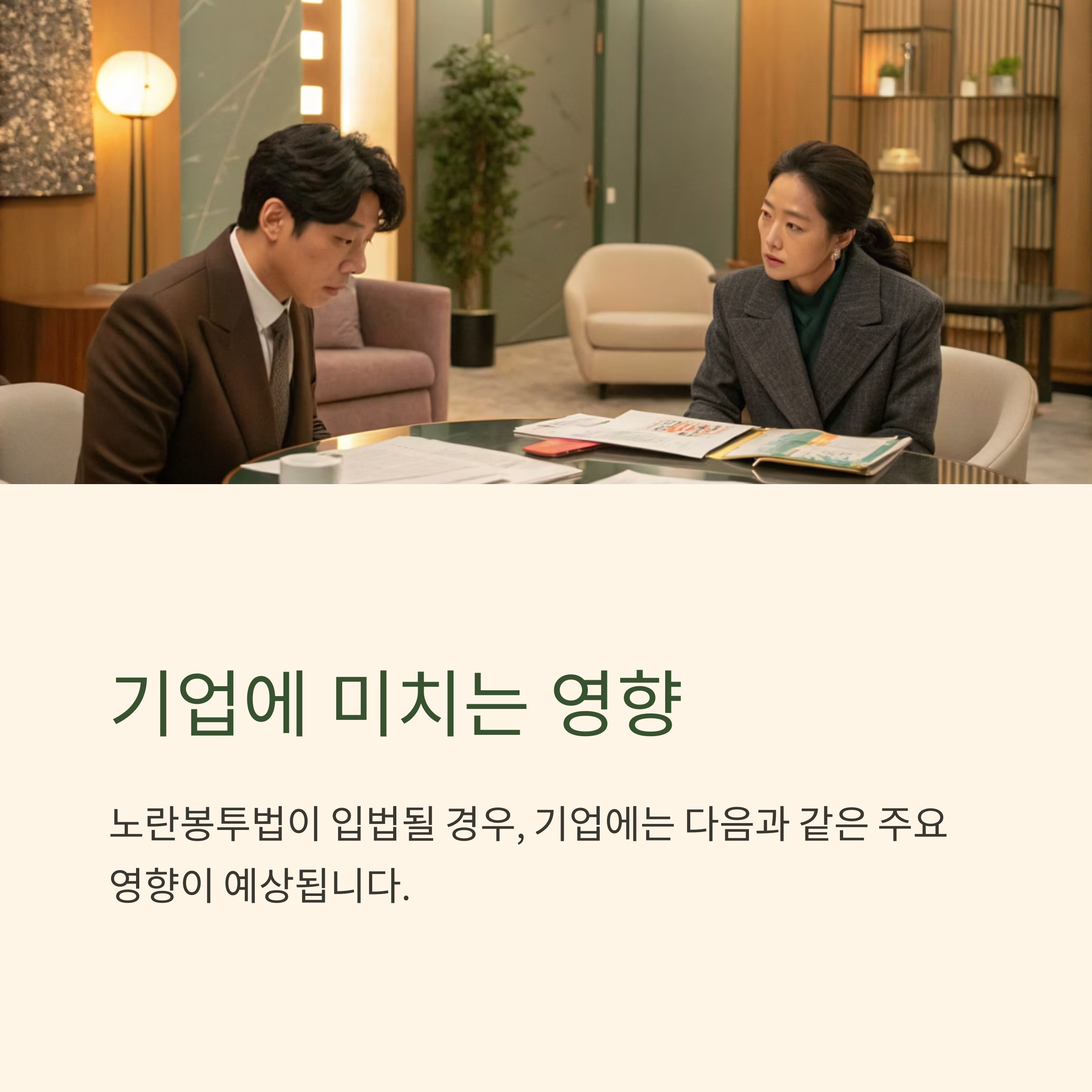 이 같은 수치는 노란봉투법이 기업 경영환경에 미치는 파장이 결코 작지 않음을 시사합니다.