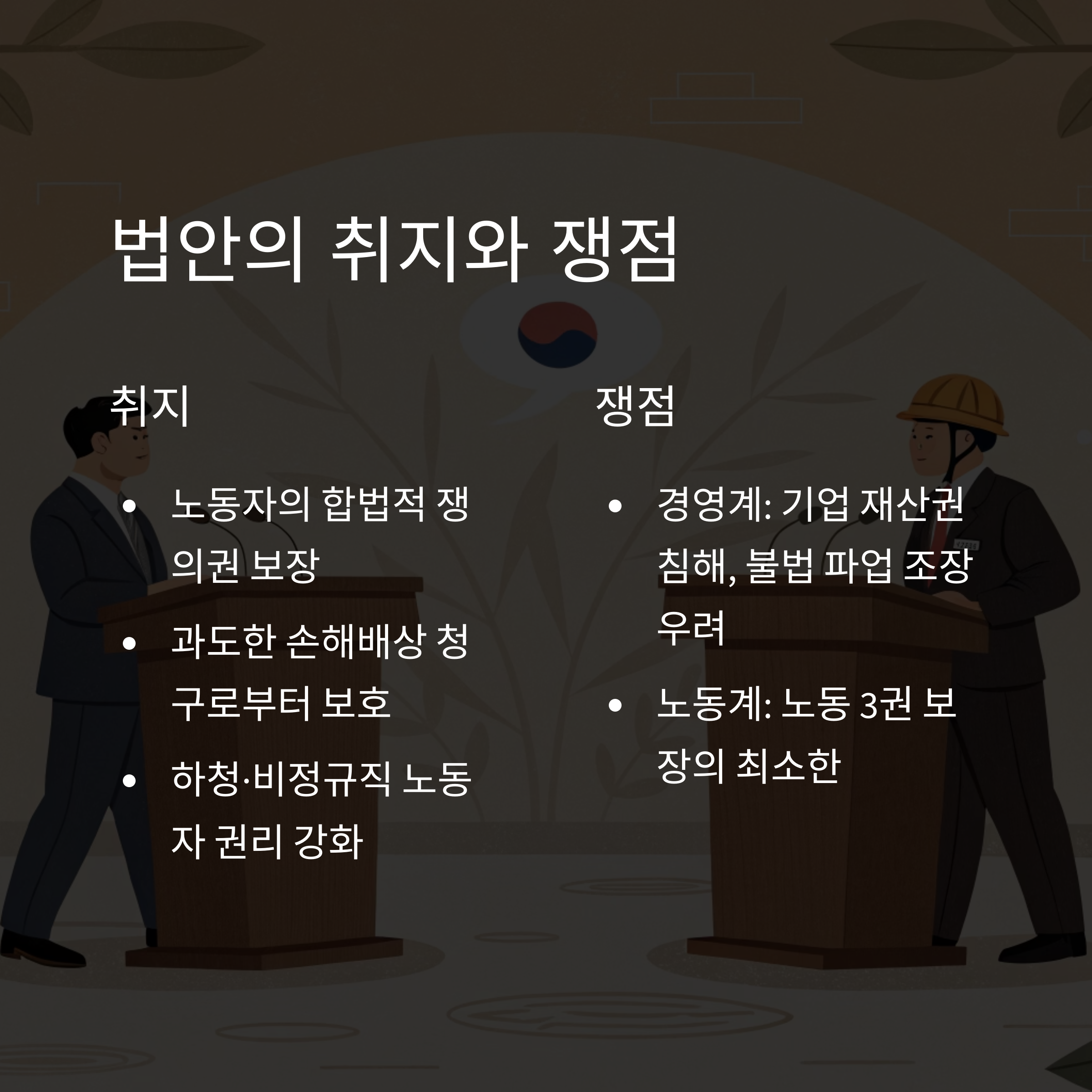 | 쟁의 주체 | 정규직 중심 | 간접·특수고용 포함 |