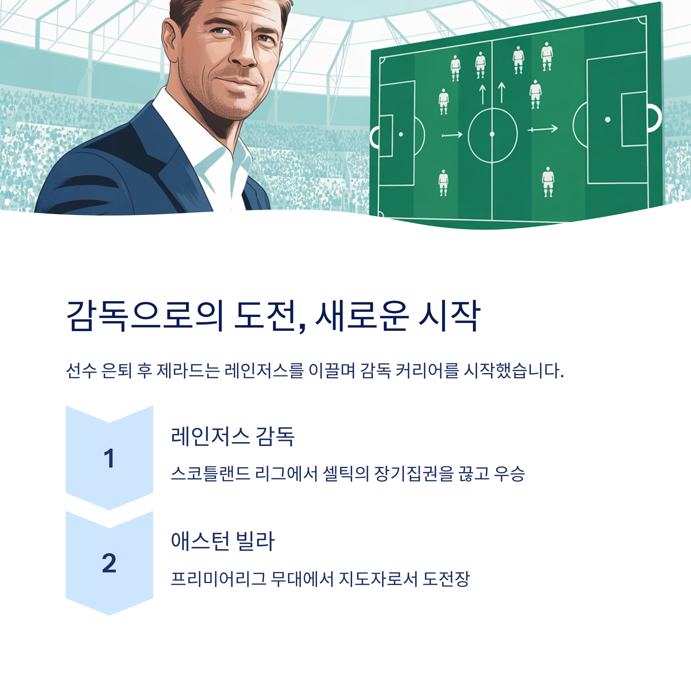 선수 은퇴 후 제라드는 레인저스를 이끌며 감독 커리어를 시작했습니다.