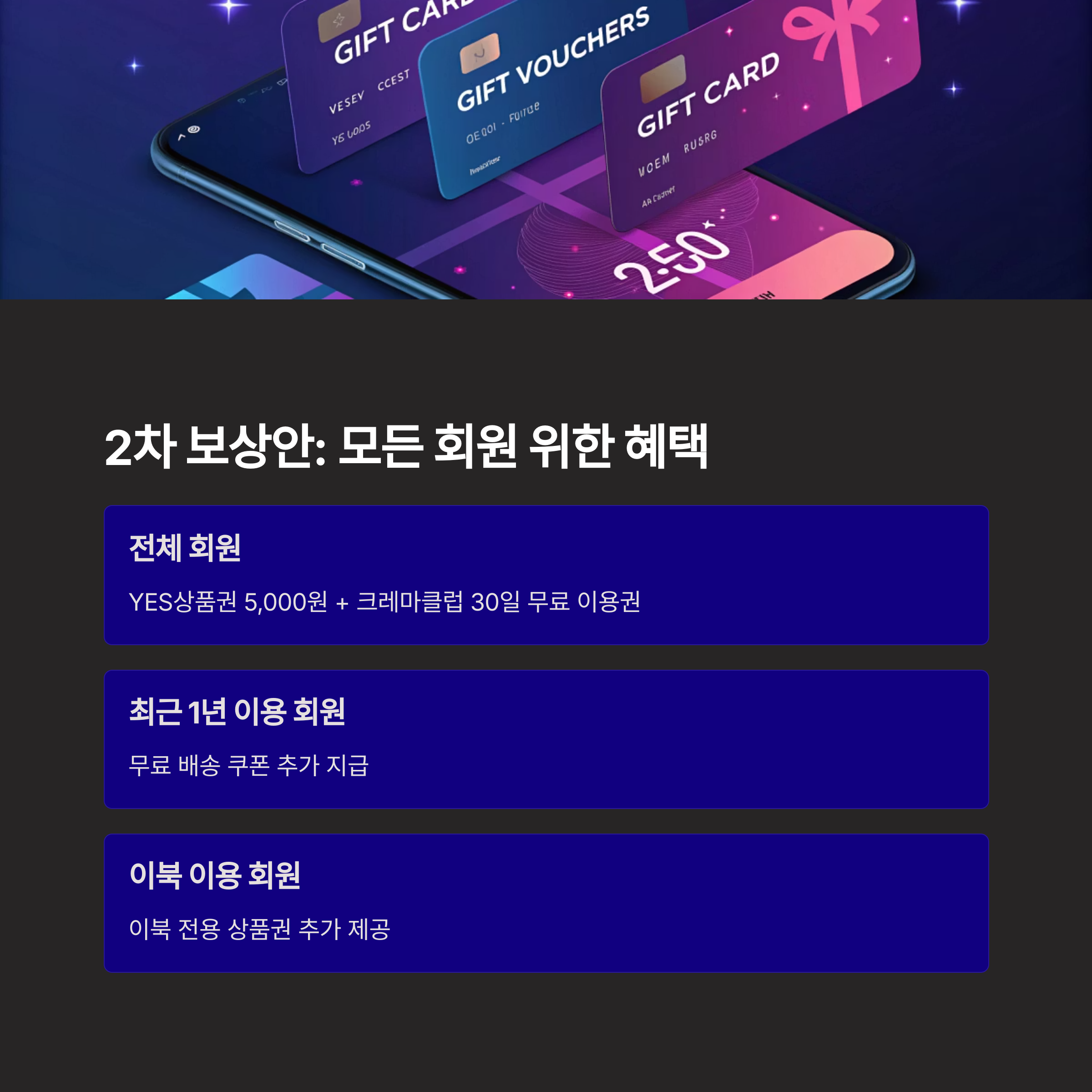 2차 보상안: 모든 회원을 대상으로 한 위로성 혜택