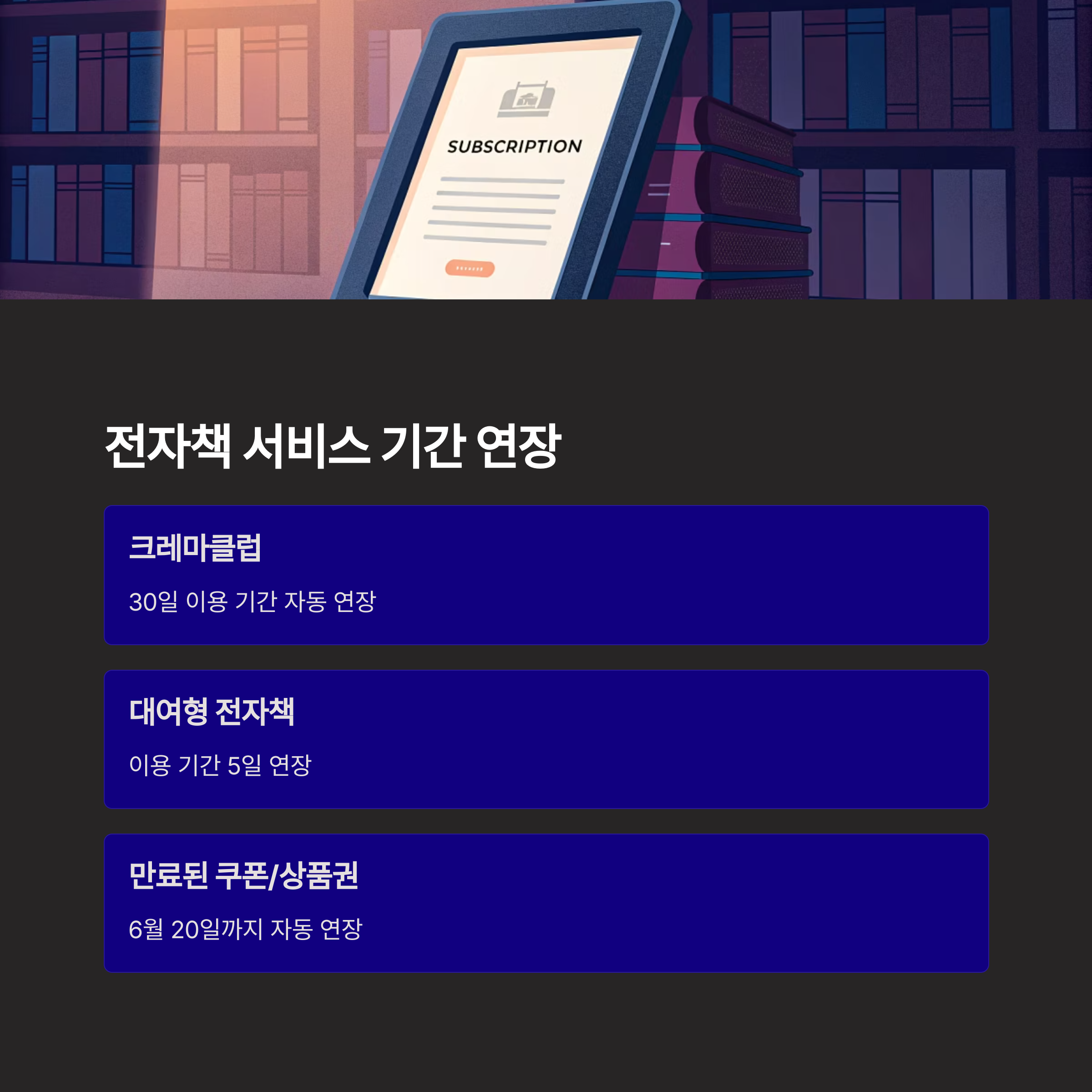 전자책과 구독 서비스도 빠짐없는 기간 연장