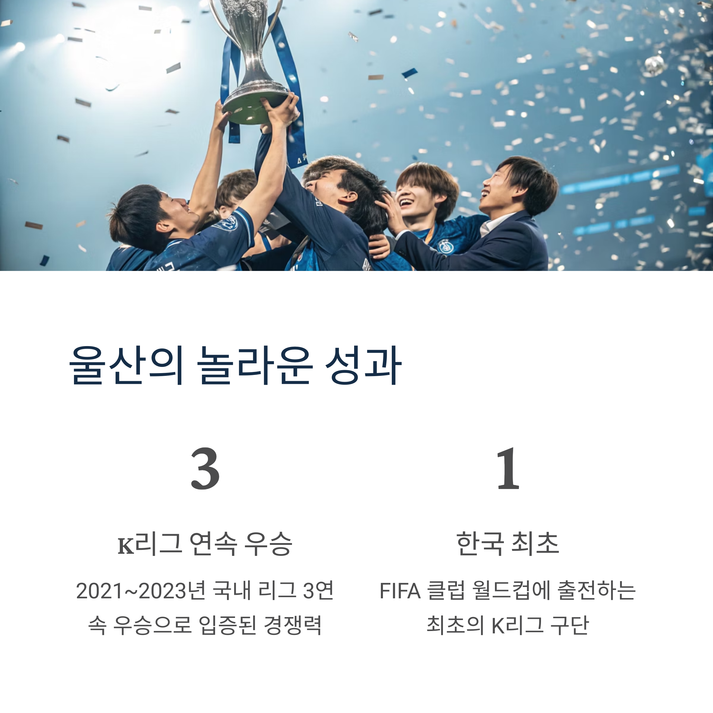 울산 HD는 단순히 운이 좋아 출전권을 얻은 것이 아닙니다. 이미 K리그 3연속 우승(2021~2023년)이라는 국내 최고의 성적을 기반으로 아시아 무대에서도 꾸준히 경쟁력을 보여준 명문 구단입니다. 이번 출전은 K리그 구단이 세계적 대회에 나서는 사상 첫 사례로서, K리그의 질적 성장과 함께 브랜드 가치까지 세계에 알릴 수 있는 중요한 기회입니다.