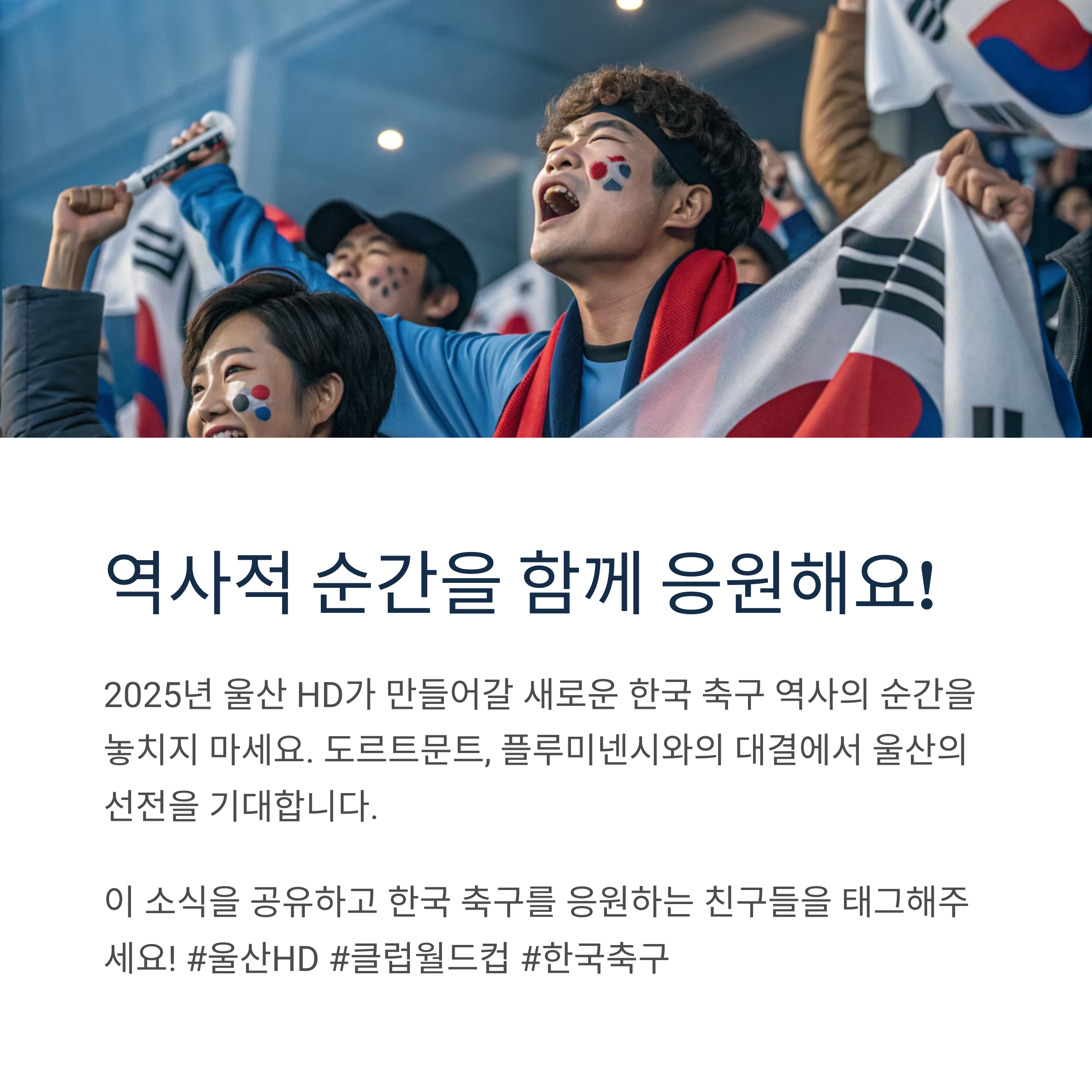울산 HD의 선전을 응원하며, 한국 축구가 또 한 걸음 세계로 나아가는 이 여정을 함께 지켜봅시다.