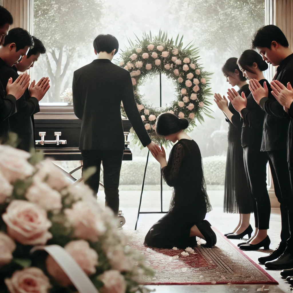 1️⃣ 유족에게 인사하기 (고개 숙여 인사하며 위로의 말 전하기)