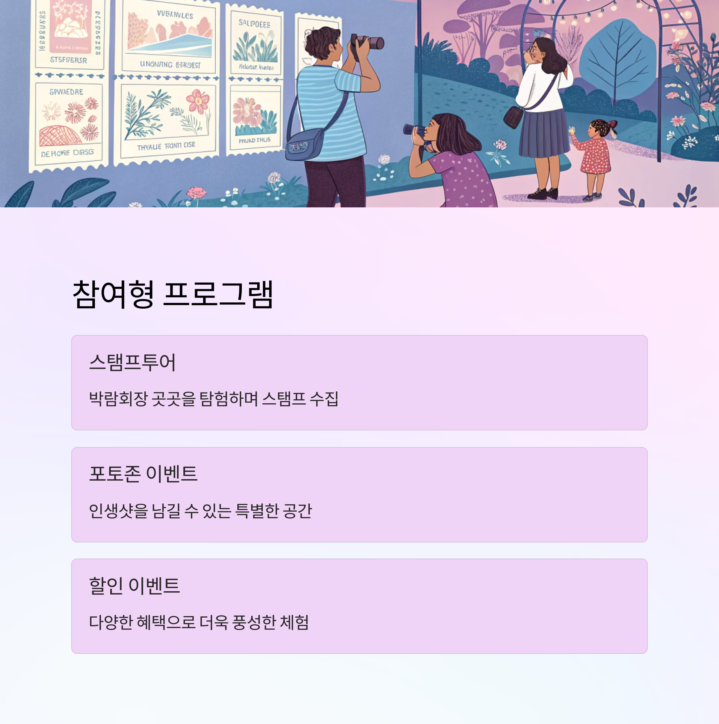 우천 시에도 대부분의 프로그램이 진행되나, 일부 야외 프로그램은 취소 또는 변경될 수 있습니다.