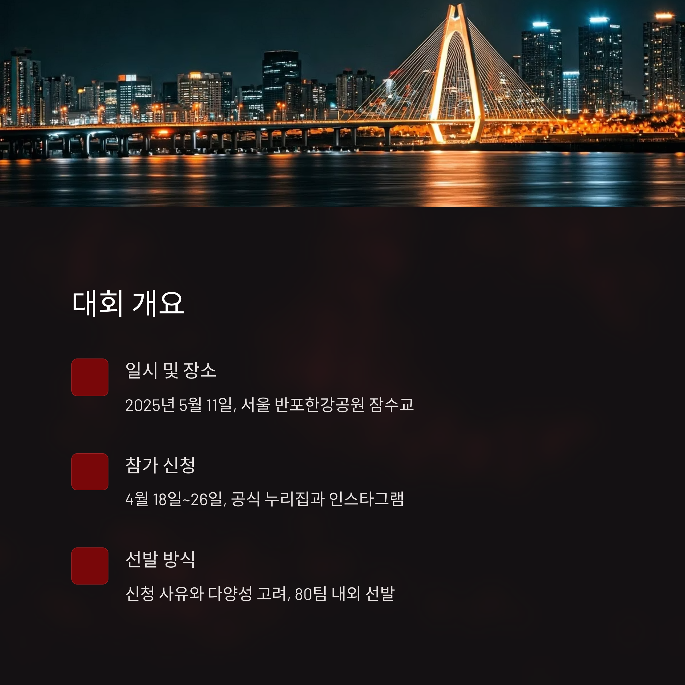 참가를 원하시는 분들은 2025년 4월 18일부터 26일까지 공식 홈페이지 또는 인스타그램을 통해 신청하시면 됩니다.