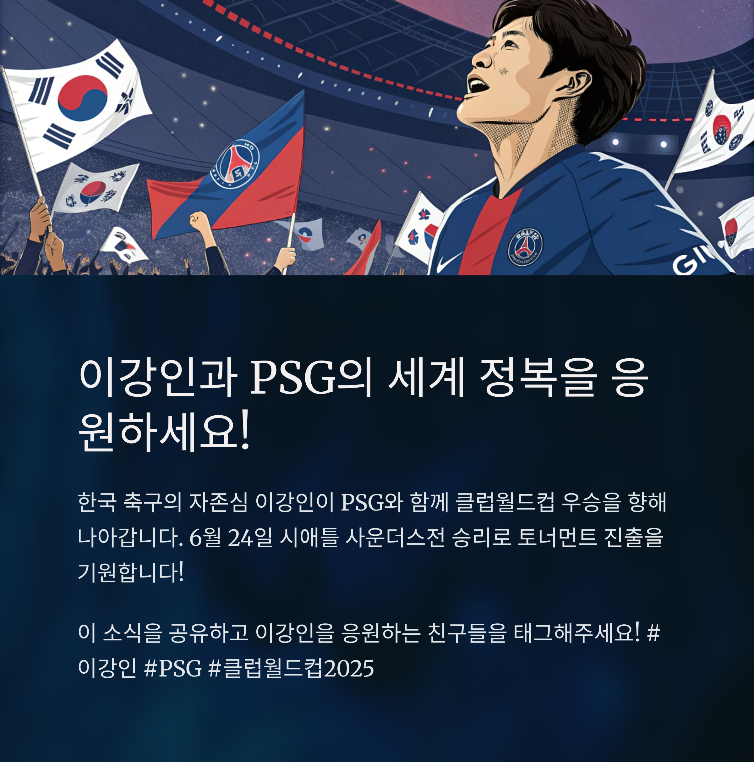 2025 FIFA 클럽월드컵은 전 세계 축구 클럽들이 진정한 '월드 챔피언' 자리를 두고 경쟁하는 무대입니다. 이강인과 PSG는 이 대회의 중심에 서 있으며, 앞으로의 행보에 따라 한국 축구사와 클럽 축구사에 새로운 페이지를 더할 수 있습니다.