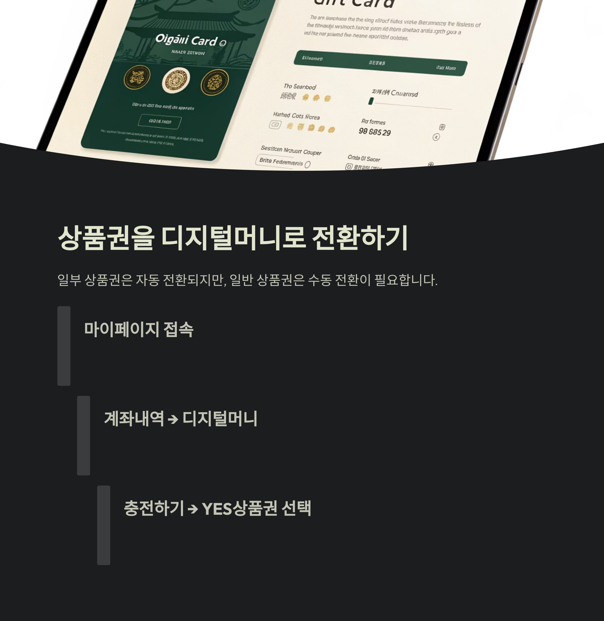 결론: 상품권 등록 → 디지털머니 전환 → 구매 진행